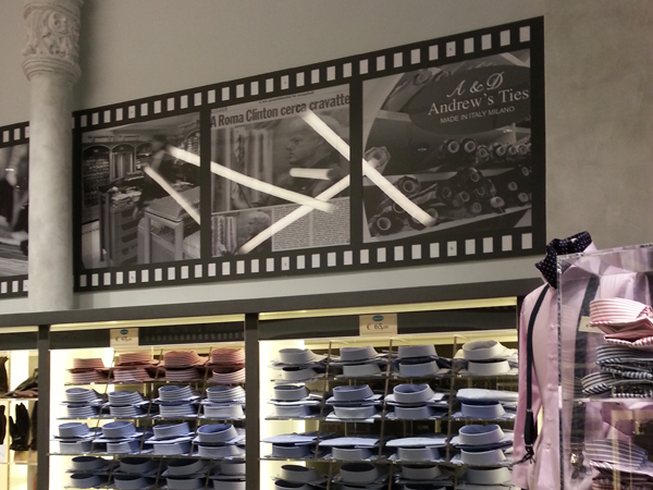 Il negozio è il Punto Vendita più importante della nota “griffe” milanese di cravatte, in cui il tradizionale format risulta radicalmente rinnovato con l'impiego di essenze in legno di rovere tinto grigio abbinato a componenti in perspex a filo lucido ed innovativi sistemi di illuminazioni dei prodotti basati sulla tecnologia led.